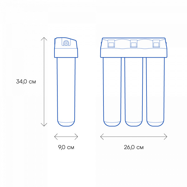 Обратноосмотические фильтры используются для абсолютной защиты от накипи, т.к. полностью устраняют соли жесткости из воды.нетЧисло ступеней очисткиКартриджи последовательно очищают воду и от видимых примесей, и от растворенных. Первый картридж задерживает более крупные частицы, а каждый последующий - более мелкие. Чем больше ступеней - тем лучше фильтр очистит воду: поймает более мелкие видимые частицы ржавчины, песка и ила, успеет захватить из воды максимум растворенных примесей - хлора, нитратов, тяжелых металлов и других.4МинерализацияПроисходит после финишной очистки воды. Необходима прежде всего в фильтре обратного осмоса, поскольку такой фильтр полностью устраняет из воды все примеси, в том числе минералы. Минералы добавляются в оптимальной концентрации - для пользы и привычного вкуса воды.нетПостфильтрацияФинальный этап очистки воды: картриджи постфильтрации удаляют самые мелкие механические частицы и кондиционируют воду, придавая ей более приятный вкус.нетНакопительная емкостьОбычно нужна в фильтрах обратного осмоса. Глубокая фильтрация требует времени. Чтобы Вам не приходилось ждать, пока вода наберется в чайник или кастрюлю, почти во всех моделях используется накопительный бак для чистой воды или другая емкость. В стандартном фильтре обратного осмоса под мойку воды в баке достаточно для семьи из 5-6 человек.нетФильтрующий модуль в комплектедаОтдельный крандаДавление в водопроводе не более, атмМаксимальное давление воды на входе в систему, при котором возможна стабильная работа фильтра.6,5Ширина, смОбратите внимание на габариты фильтра, и измерьте, сколько свободного пространства в предполагаемом месте установки.26,0Глубина, смОбратите внимание на габариты фильтра, и измерьте, сколько свободного пространства в предполагаемом месте установки.9,0Защита корпуса от гидроударовдаИсходная водаЖесткая вода – вода с избытком минеральных солей. От нее появляется накипь в чайнике, известковый налет на сантехнике и разводы на посуде. Мягкая вода – та, в которой мало минеральных солей. Нет накипи в чайнике и разводов на посуде. Фильтры для мутной воды и фильтры от ржавчины, как правило, имеют несколько стадий очистки и дополнительный полипропиленовый картридж. Он задерживает механические частицы ила, песка и ржавчины и защищает картриджи более глубокой очистки.мягкаяУстраняет мутностьМутность водопроводной воды может говорить о том, что в ней много мелких механических частиц. Важно, чтобы в фильтре был установлен дополнительные картридж механической предфильтрации (полипропиленовый) - он продлит жизнь остальным картриджам более тонкой очистки.даУстраняет ржавчину, бурый осадокЛюбой фильтр под мойку удалит из воды крупные и мелкие частицы ржавчины. Некоторые фильтры имеют повышенный ресурс по железу: они дольше служат в такой воде, поскольку лучше подходят для удаления из воды железа и механических частиц ржавчины.даЗащита от бактерийВсе проточные фильтры в той или иной степени защищают от бактерий. Например, добавление серебра препятствует их размножению. Это стандартная степень защиты. Если в семье есть дети, пожилые люди или аллергики, воду рекомендуется обеззараживать, то есть полностью удалять микроорганизмы. Повышенную защиту от бактерий дают фильтры с половолоконной мембраной. Это пучок трубо