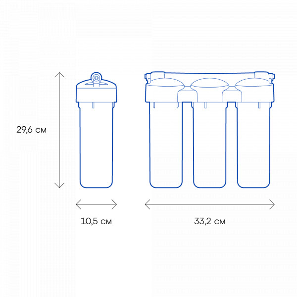 Обратноосмотические фильтры используются для абсолютной защиты от накипи, т.к. полностью устраняют соли жесткости из воды.нетЧисло ступеней очисткиКартриджи последовательно очищают воду и от видимых примесей, и от растворенных. Первый картридж задерживает более крупные частицы, а каждый последующий - более мелкие. Чем больше ступеней - тем лучше фильтр очистит воду: поймает более мелкие видимые частицы ржавчины, песка и ила, успеет захватить из воды максимум растворенных примесей - хлора, нитратов, тяжелых металлов и других.3МинерализацияПроисходит после финишной очистки воды. Необходима прежде всего в фильтре обратного осмоса, поскольку такой фильтр полностью устраняет из воды все примеси, в том числе минералы. Минералы добавляются в оптимальной концентрации - для пользы и привычного вкуса воды.нетПостфильтрацияФинальный этап очистки воды: картриджи постфильтрации удаляют самые мелкие механические частицы и кондиционируют воду, придавая ей более приятный вкус.нетНакопительная емкостьОбычно нужна в фильтрах обратного осмоса. Глубокая фильтрация требует времени. Чтобы Вам не приходилось ждать, пока вода наберется в чайник или кастрюлю, почти во всех моделях используется накопительный бак для чистой воды или другая емкость. В стандартном фильтре обратного осмоса под мойку воды в баке достаточно для семьи из 5-6 человек.нетФильтрующий модуль в комплектедаОтдельный крандаДавление в водопроводе не более, атмМаксимальное давление воды на входе в систему, при котором возможна стабильная работа фильтра.6,5Ширина, смОбратите внимание на габариты фильтра, и измерьте, сколько свободного пространства в предполагаемом месте установки.33,2Глубина, смОбратите внимание на габариты фильтра, и измерьте, сколько свободного пространства в предполагаемом месте установки.10,5Защита корпуса от гидроударовдаИсходная водаЖесткая вода – вода с избытком минеральных солей. От нее появляется накипь в чайнике, известковый налет на сантехнике и разводы на посуде. Мягкая вода – та, в которой мало минеральных солей. Нет накипи в чайнике и разводов на посуде. Фильтры для мутной воды и фильтры от ржавчины, как правило, имеют несколько стадий очистки и дополнительный полипропиленовый картридж. Он задерживает механические частицы ила, песка и ржавчины и защищает картриджи более глубокой очистки.мягкаяУстраняет мутностьМутность водопроводной воды может говорить о том, что в ней много мелких механических частиц. Важно, чтобы в фильтре был установлен дополнительные картридж механической предфильтрации (полипропиленовый) - он продлит жизнь остальным картриджам более тонкой очистки.нетУстраняет ржавчину, бурый осадокЛюбой фильтр под мойку удалит из воды крупные и мелкие частицы ржавчины. Некоторые фильтры имеют повышенный ресурс по железу: они дольше служат в такой воде, поскольку лучше подходят для удаления из воды железа и механических частиц ржавчины.даЗащита от бактерийВсе проточные фильтры в той или иной степени защищают от бактерий. Например, добавление серебра препятствует их размножению. Это стандартная степень защиты. Если в семье есть дети, пожилые люди или аллергики, воду рекомендуется обеззараживать, то есть полностью удалять микроорганизмы. Повышенную защиту от бактерий дают фильтры с половолоконной мембраной. Это пучок труб