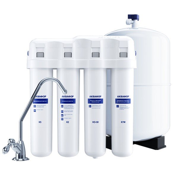 Аквафор Осмо-Кристалл 50 исп. 4M полностью устраняет жесткость - причину накипи, а также все опасные примеси из водопроводной воды, включая бактерии, паразитов и вирусы. Накопительный бак, блок кондиционирования в комплекте. Система рекомендована для детского питания.
