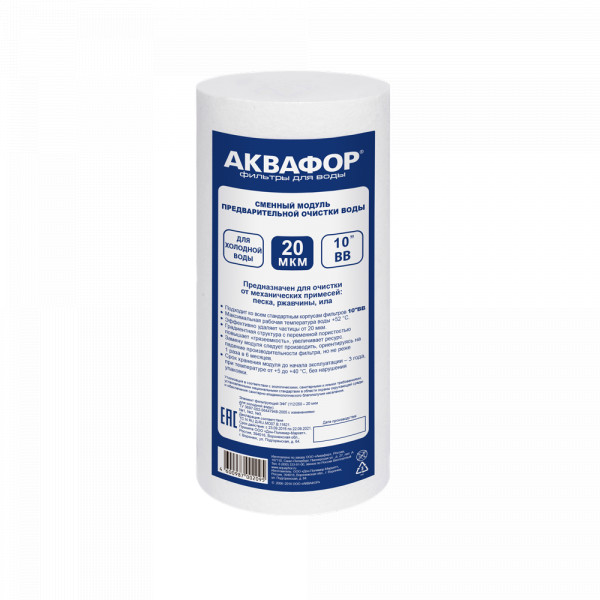 Сменный модуль для очистки холодной воды от видимых растворенных взвесей - песка, ржавчины и других механических примесей. Обеспечивает базовую предочистку воды во всей квартире, при этом напор остается практически без изменений. В зависимости от степени загрязнения, выбирайте картриджи пористостью 5 или 20 микрон.